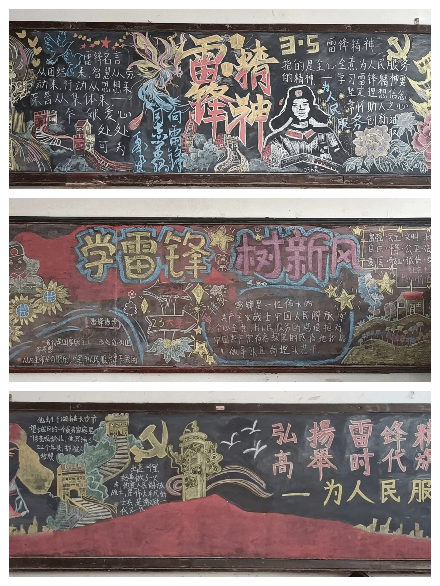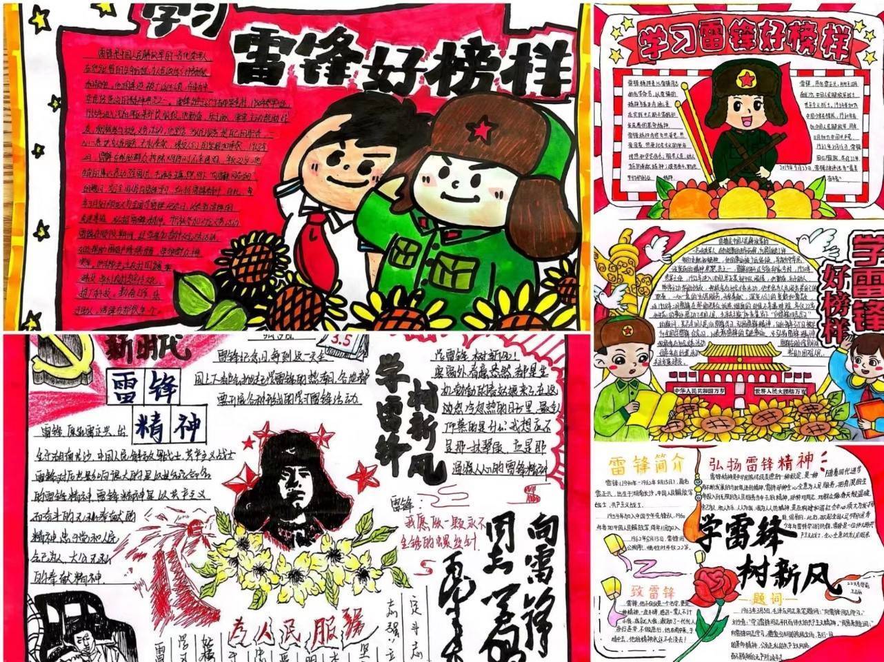 各专业部以校内宣传为主阵地,积极营造学雷锋、争先锋的良好氛围。通过主题手抄报、黑板报、硬笔书法评比、午间唱雷锋歌曲等宣传手段对雷锋的生平事迹进行全方位、多角度的报道,表达了建校学子对雷锋精神的理解与传承,让雷锋精神内化于心,充分认识把雷锋精神代代传下去的重大意义!