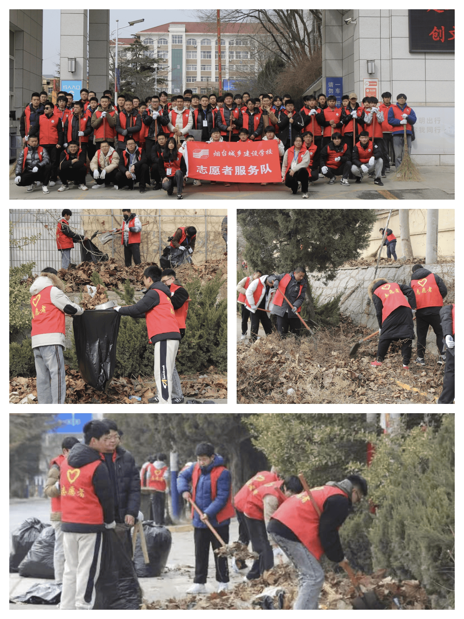 行之愈笃,则知之愈益明。建筑工程专业部发挥专业优势,对校园破损边角进行修补,传承匠心技艺,为学生德技并修提供助力;机电技术专业部、学前教育专业部、财经管理专业部和成教处(世赛中心)秉承“劳动创造美好生活”理念,践行“为人民服务”的誓言,组织各班级志愿清扫活动;国防教育专业部协助芝罘区武装部进行役前集训准备工作,打扫营房卫生,搬运集训工具,整理仓库装备。活动中,全体学生发扬不怕苦、不怕累、不怕脏的“雷锋精神”,校内外的每个角落,都留下了属于他们自己的“最美身影”。